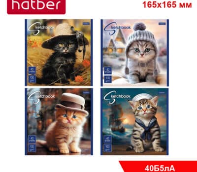 Блокнот 40 л А5 Sketch book «Котики-артисты » без линов/165*165/ 100гр